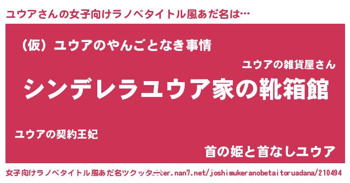 | 男性向けラノベタイトル風あだ名 | 『緋弾のユウア』『ユウアの憂鬱』 |