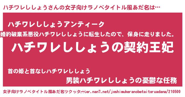 ハチワレししょうさんの女子向けラノベタイトル風あだ名