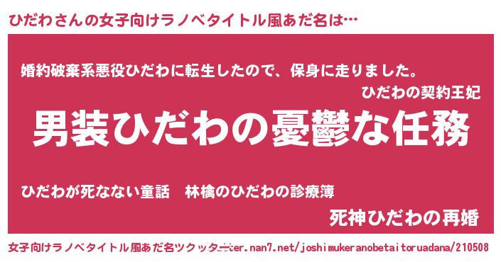 | 男性向けラノベタイトル風あだ名 | 『うちのひだわが世界を掌握している!』 |