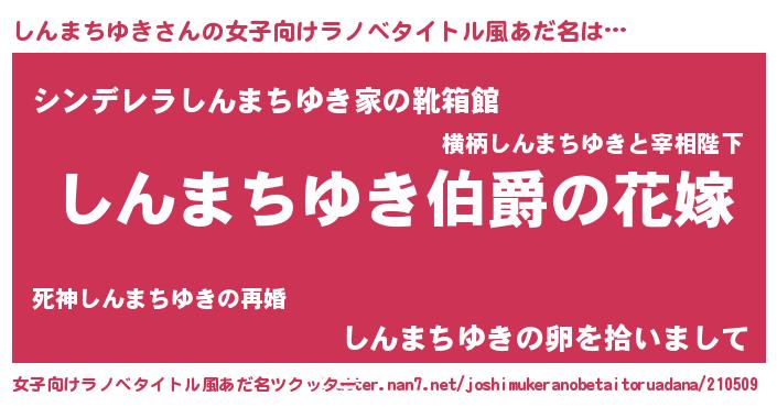 | 意味不明あだ名 | 『しんまちゆきフォーエバー』 |