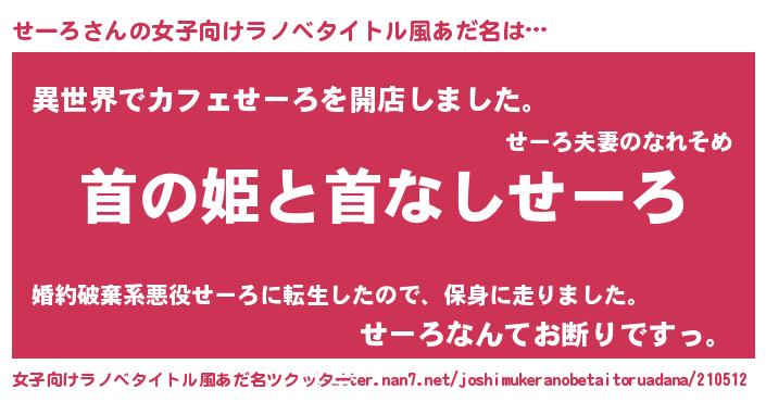 | 男性向けラノベタイトル風あだ名 | 『はたらくせーろさま!』 |