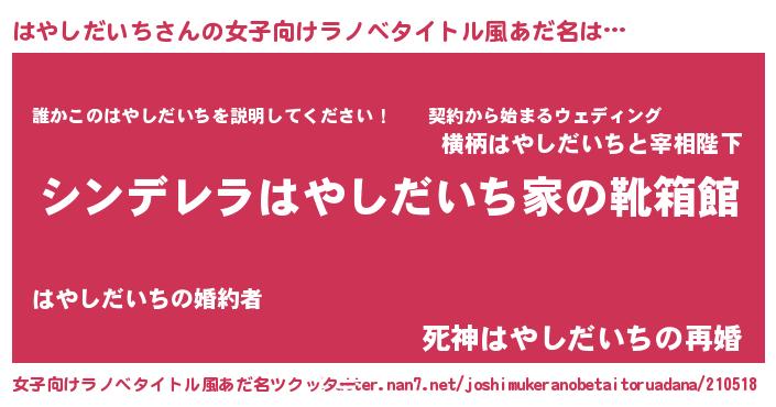 | 胡散臭い通販商品みたいなあだ名 | 『モテモテ間違いなし水晶球…その名も「はやしだいち」』 |