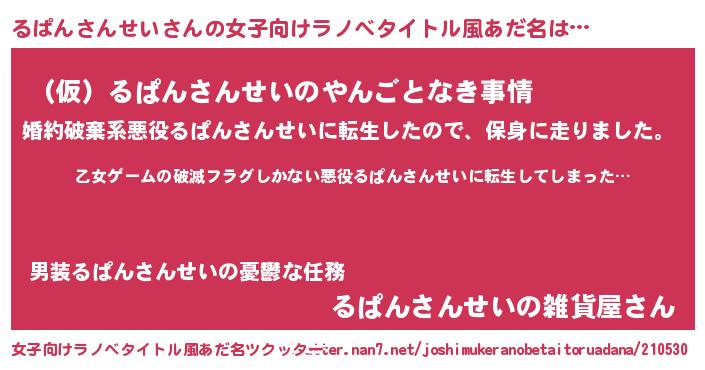 | 胡散臭い通販商品みたいなあだ名 | 『世界中を虜にした世界で10本だけ現存している希少なブランデー…その名も「るぱんさんせい」』 |