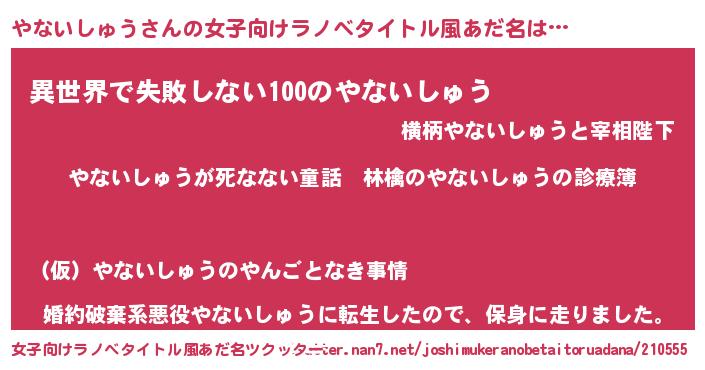 | 意味不明あだ名 | 『住所不定無職やないしゅう(6歳)』 |
