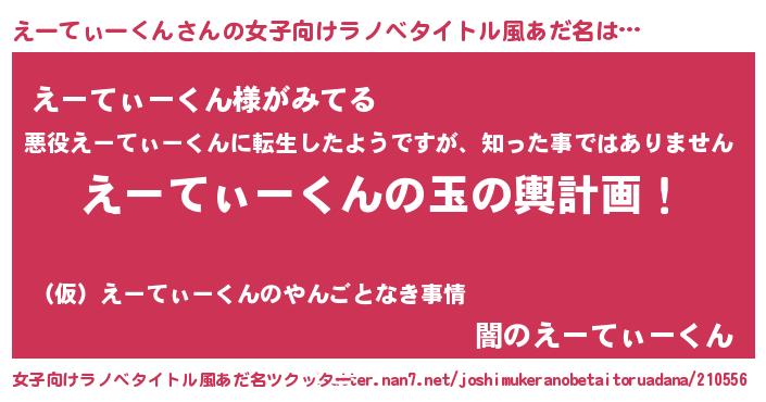 | 胡散臭い通販商品みたいなあだ名 | 『全米が絶賛したサプリメント…その名も「えーてぃーくん」』 |