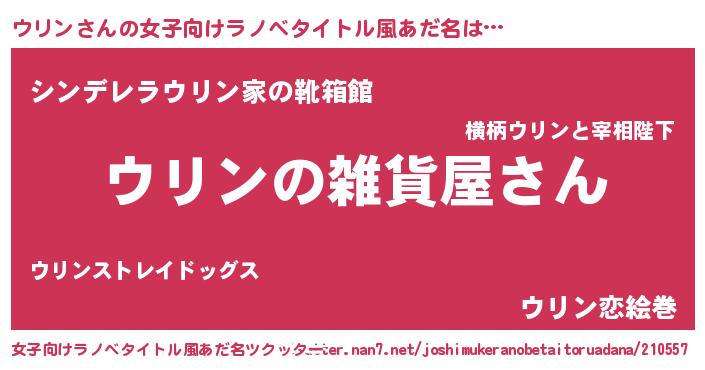 | 男性向けラノベタイトル風あだ名 | 『やはりウリンの青春ラブコメはまちがっている 』 |
