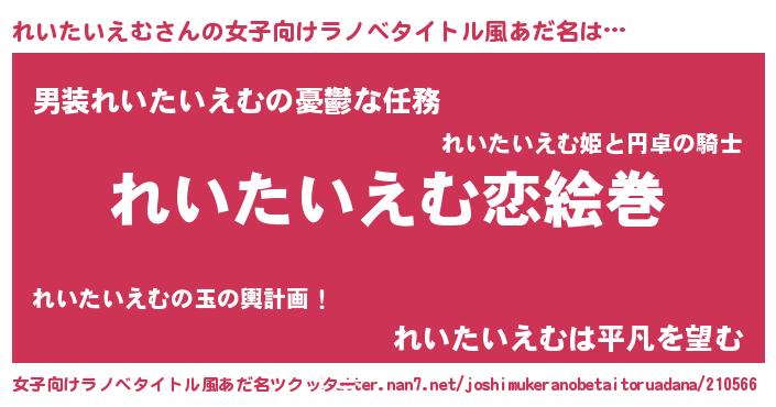 | 男性向けラノベタイトル風あだ名 | 『ノーゲーム・ノーレイタイエム』 |