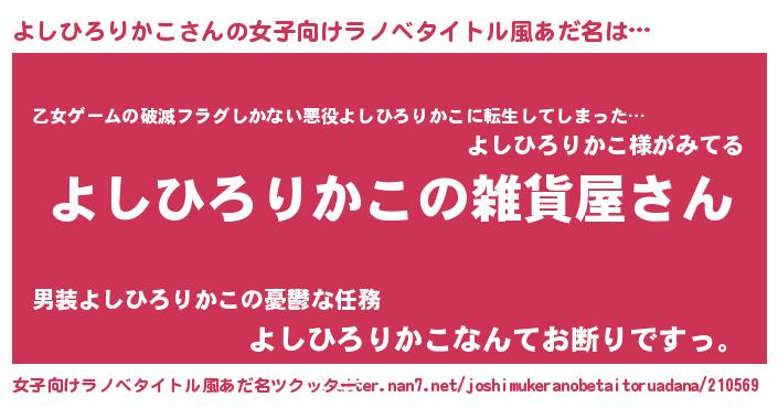 | 男性向けラノベタイトル風あだ名 | 『やはりよしひろりかこの青春ラブコメはまちがっている 』 |