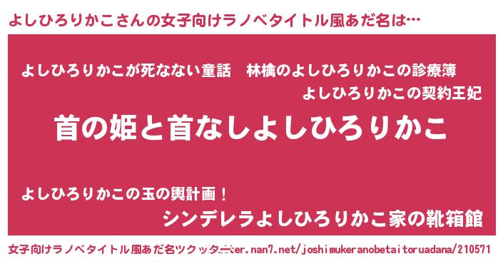 | 男性向けラノベタイトル風あだ名 | 『はたらくよしひろりかこさま!』 |