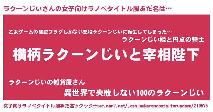 | 意味不明あだ名 | 『住所不定無職ラクーンじい(40歳)』 |