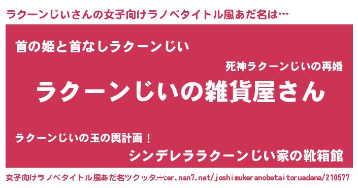 | 男性向けラノベタイトル風あだ名 | 『やはりラクーンじいの青春ラブコメはまちがっている 』 |