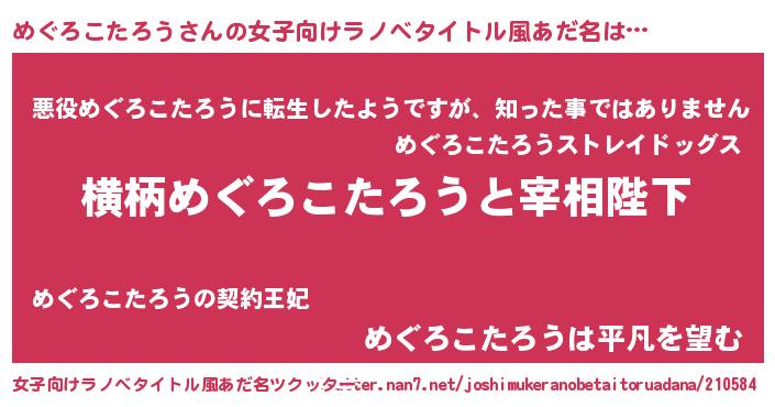 | 男性向けラノベタイトル風あだ名 | 『めぐろこたろうに滅ぼされるだけの簡単なお仕事です』 |