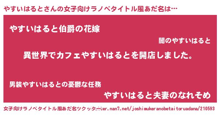 | 意味不明あだ名 | 『永久保存やすいはると』 |