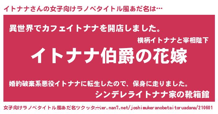 | 意味不明あだ名 | 『イトナナフォーエバー』『自称イトナナ』 |