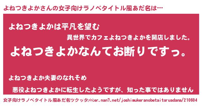 | 男性向けラノベタイトル風あだ名 | 『魔法科高校のよねつきよか』 |