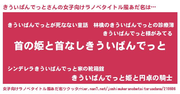 | 男性向けラノベタイトル風あだ名 | 『はたらくきういばんでっとさま!』 |