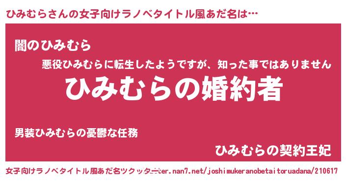 | ファンタジー風あだ名 | 『エターナルヒミムラー』『ゼヒミトゥ』 |