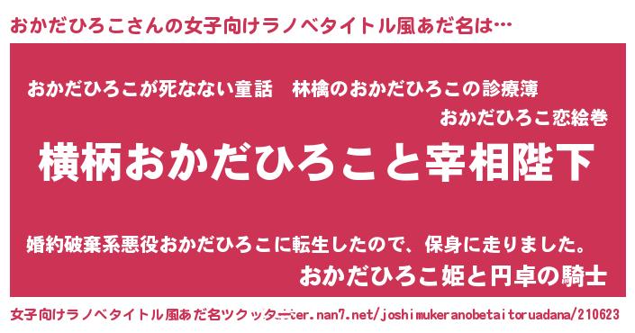 | 男性向けラノベタイトル風あだ名 | 『おかだひろこに滅ぼされるだけの簡単なお仕事です』 |