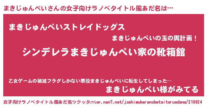 | 男性向けラノベタイトル風あだ名 | 『冴えないまきじゅんぺいの育てかた』 |