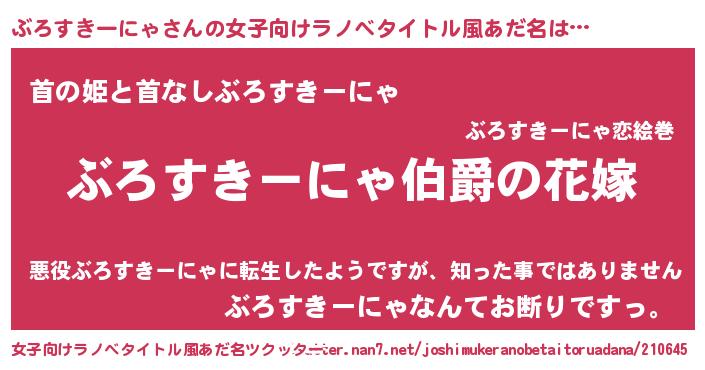 | 肩書あだ名 | 『ぶろすきーにゃ総理大臣』 |