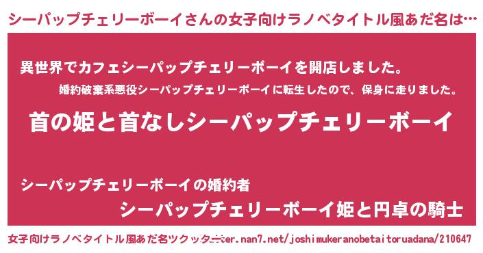 | ヒーロー風カッコイイあだ名 | 『ネオシーパップチェリーボーイ』 |