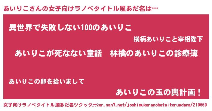 | ヘコむあだ名 | 『あいりこ(小並感)』『あいっちょ』 |
