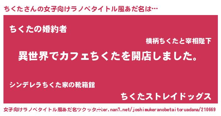 | 男性向けラノベタイトル風あだ名 | 『誰もが恐れるあのちくたが、ぼくの専属メイドになるようです。』 |