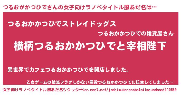 | 男性向けラノベタイトル風あだ名 | 『つるおかかつひでに滅ぼされるだけの簡単なお仕事です』 |