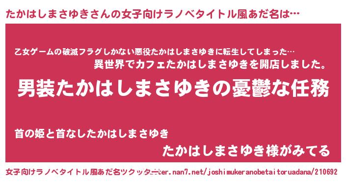 | 男性向けラノベタイトル風あだ名 | 『うちのたかはしまさゆきが世界を掌握している!』 |