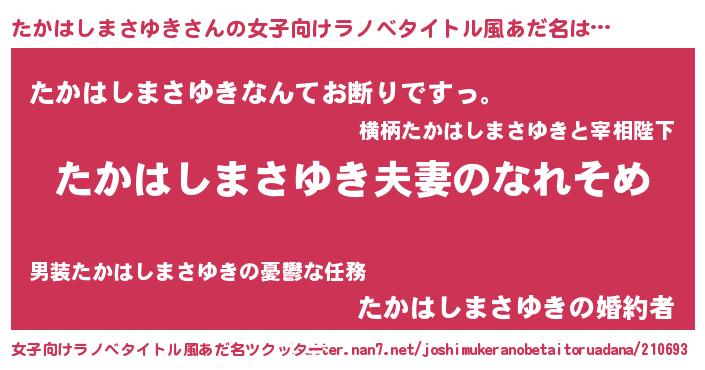 | 男性向けラノベタイトル風あだ名 | 『おまえをオタクにしてやるから、俺をたかはしまさゆきにしてくれ! 』 |