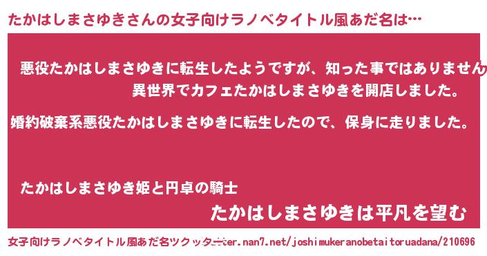 | 男性向けラノベタイトル風あだ名 | 『タカハシマサユキスレイヤー』 |