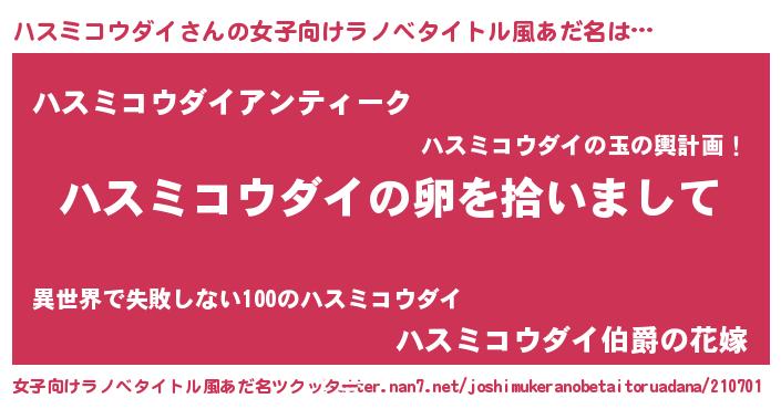 | ポケモン風あだ名 | 『ヒハスミコウダイ』『ハスセウス』 |