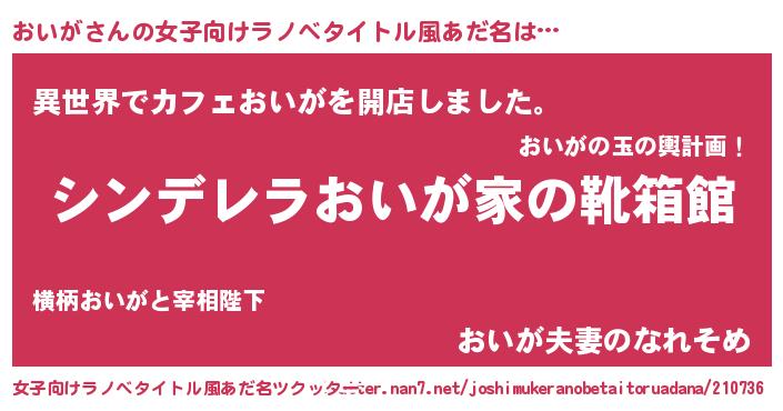 | 胡散臭い通販商品みたいなあだ名 | 『来世でも幸せになれる水素水…その名も「おいが」』 |