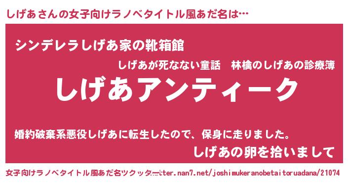 | 意味不明あだ名 | 『自称しげあ』『とにかく怪しいしげあ』 |