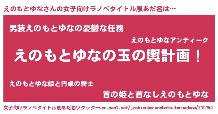 | 男性向けラノベタイトル風あだ名 | 『転生したらえのもとゆなだった件』 |