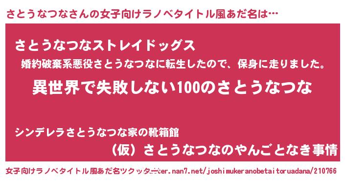 | 男性向けラノベタイトル風あだ名 | 『さとうなつなという概念が存在しない退屈な世界 』 |