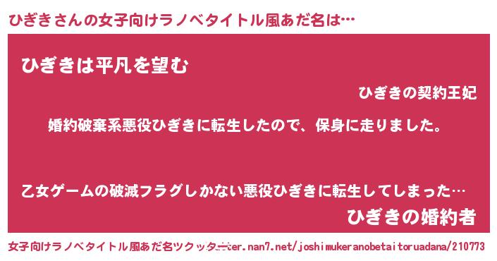| 男性向けラノベタイトル風あだ名 | 『ヒギキスレイヤー』『魔弾の王とひぎき』 |