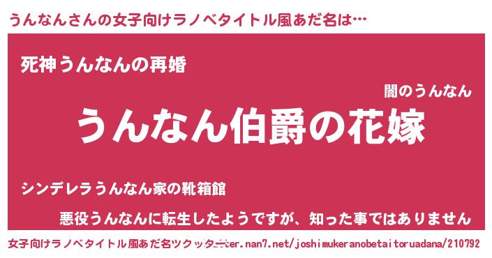 | ファンタジー風あだ名 | 『エターナルウンナンー』『クインウット』 |