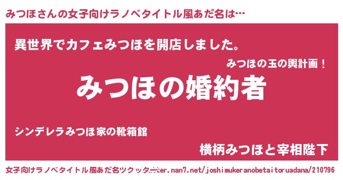 | 胡散臭い通販商品みたいなあだ名 | 『運命の人と巡り会える高級そうな絵画…その名も「みつほ」』 |