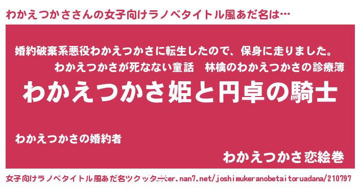 | 男性向けラノベタイトル風あだ名 | 『わかえつかさの憂鬱』 |