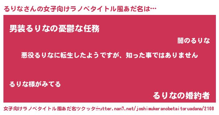 | 男性向けラノベタイトル風あだ名 | 『この素晴らしい世界にるりなを!』 |
