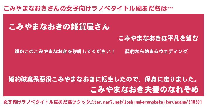 | 胡散臭い通販商品みたいなあだ名 | 『億万長者になれるブレスレット…その名も「こみやまなおき」』 |