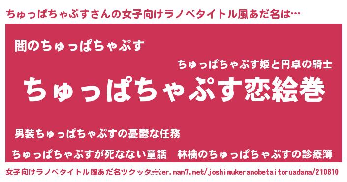 | 男性向けラノベタイトル風あだ名 | 『ノーゲーム・ノーチュッパチャプス』 |