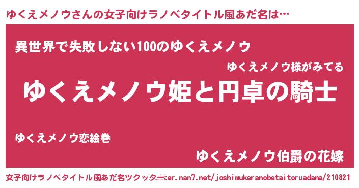 | 男性向けラノベタイトル風あだ名 | 『ゆくえメノウの憂鬱』 |