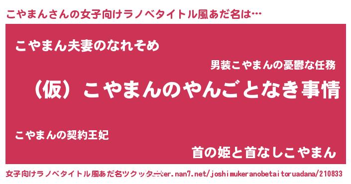 | 男性向けラノベタイトル風あだ名 | 『こやまんの憂鬱』 |