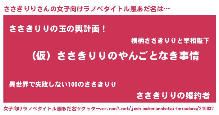 | 胡散臭い通販商品みたいなあだ名 | 『必ず成功するブレスレット…その名も「ささきりり」』 |