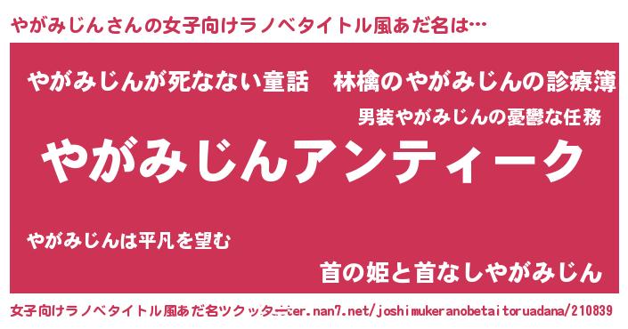 | 男性向けラノベタイトル風あだ名 | 『魔法科高校のやがみじん』 |