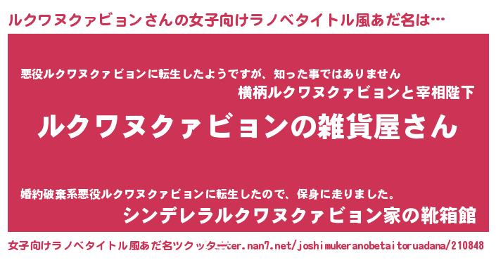 | ファンタジー風あだ名 | 『エターナルルクワヌクァビョンー』 |