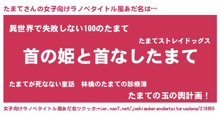 | 意味不明あだ名 | 『永久保存たまて』『めかぶ科たまて属』 |