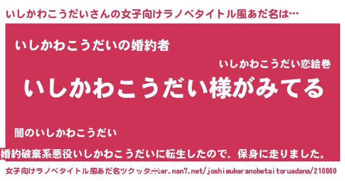 | 伝説のあだ名 | 『覚醒した僧侶いしかわこうだい』 |